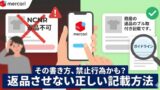 出品者が「ノークレームノーリターン」「返品不可」と書いていても、それで終わりにはなりません。少なくともメルカリの運用上、商品に問題があるのに一律で返品拒否するような記載は推奨されません。
